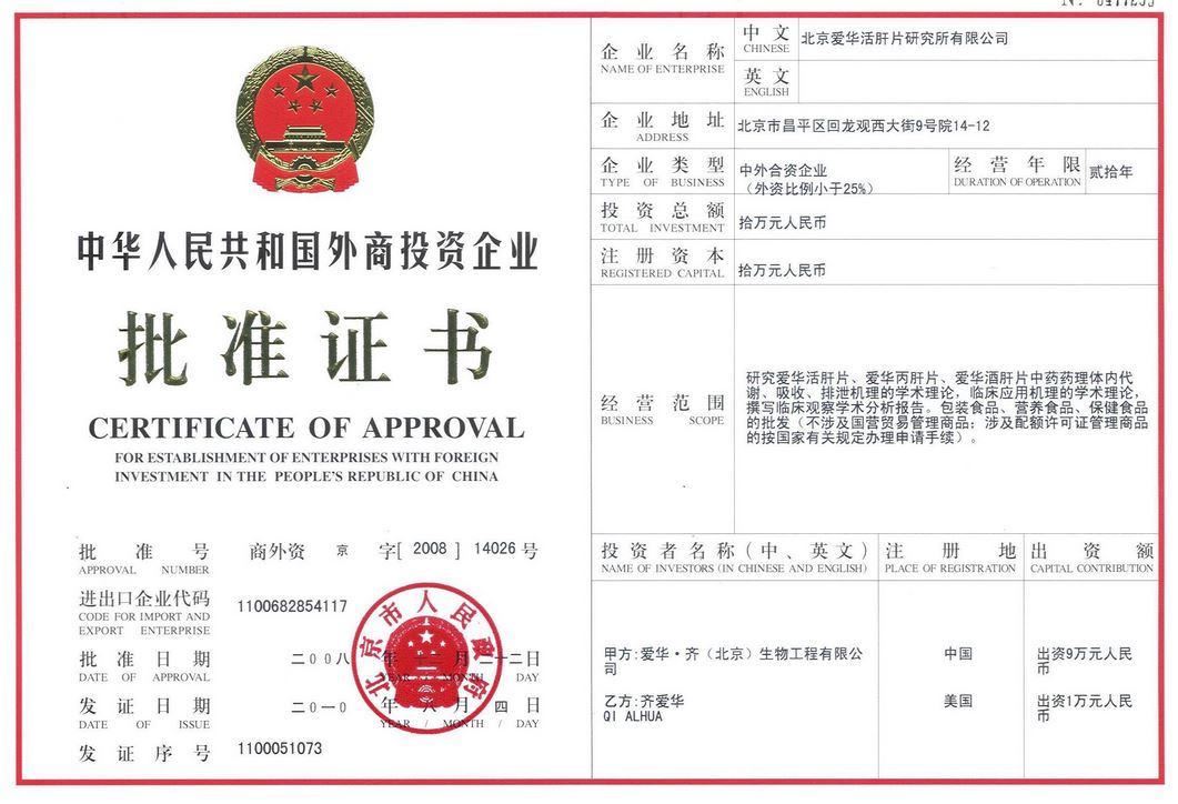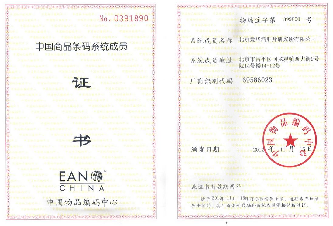 北京愛華活肝片研究所有限公司 組織機(jī)構(gòu)代碼證