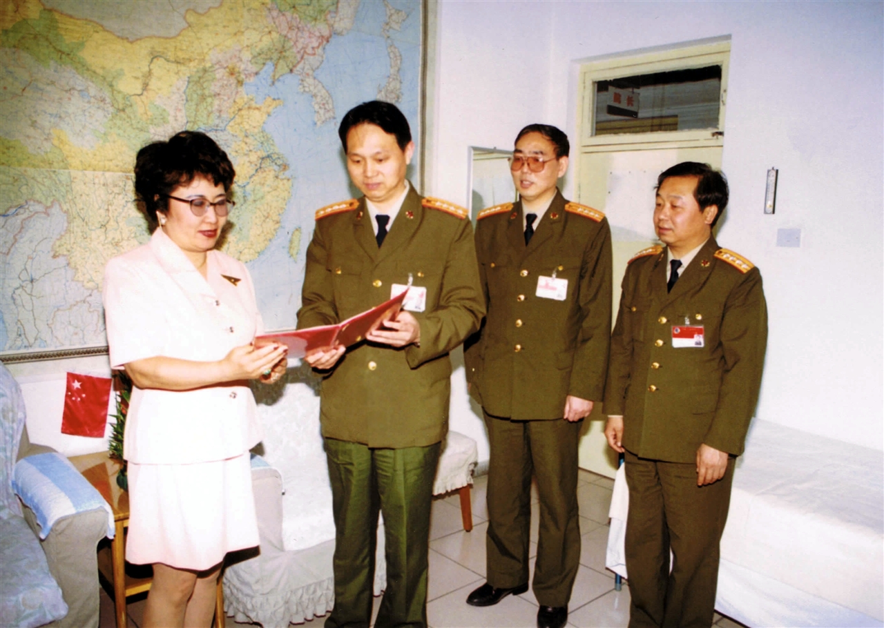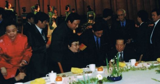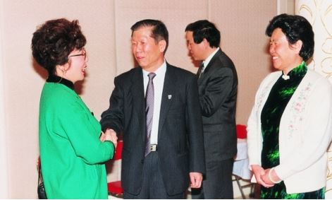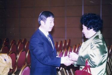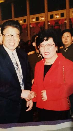 1998年春節(jié)團拜會上齊愛華教授與原全國政協(xié)主席李瑞環(huán)合影