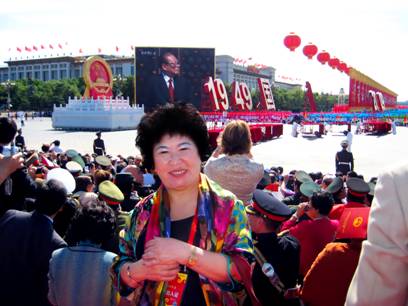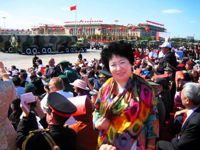2009年10月1日齊愛華教授作為海外知名愛國華僑代表參加國慶六十周年大典,這是齊愛華教授在觀禮臺上2