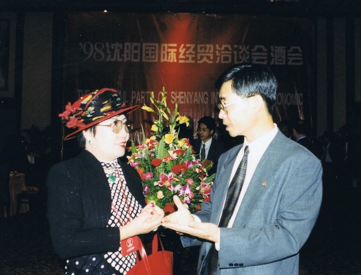 1998年齊愛華教授在沈陽國際經(jīng)貿(mào)洽談會上