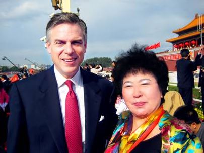 2009年10月1日齊愛華教授作為海外知名愛國華僑代表參加國慶六十周年大典,這是齊愛華教授在觀禮臺上和美國駐華總領(lǐng)事合影