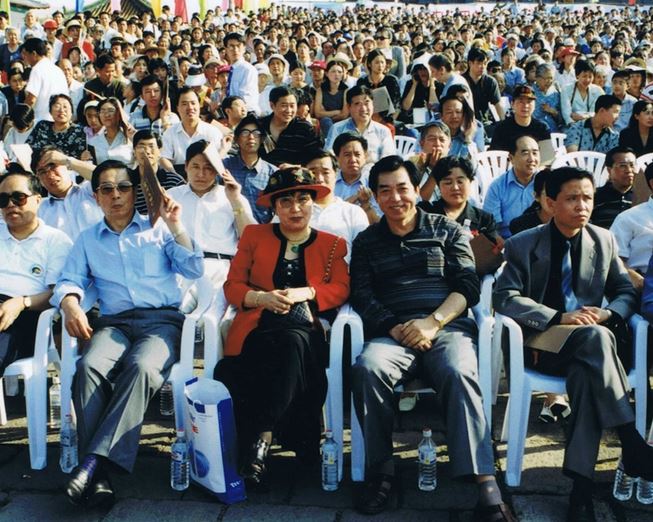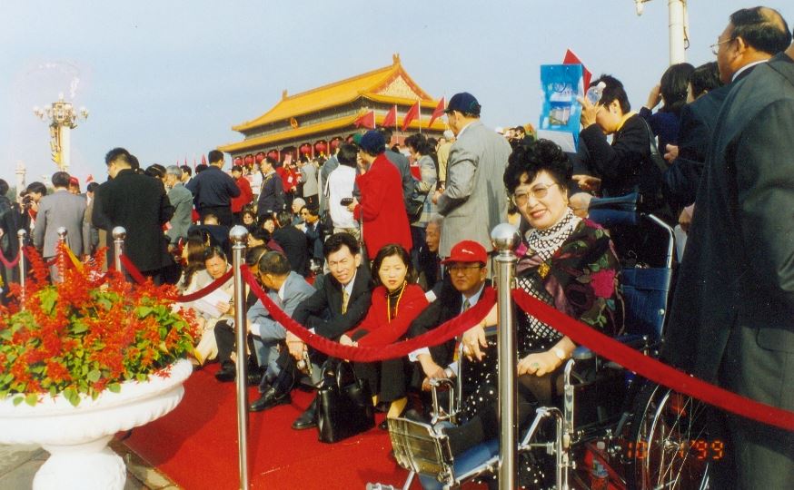 建國五十年大慶齊愛華教授作為海外杰出貢獻華僑在天安門觀禮臺上