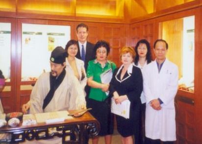 齊愛華教授與香港中醫(yī)藥管委會梁秉忠主席及美國上市公司總裁研究合作中藥產(chǎn)品“愛華活肝片”1